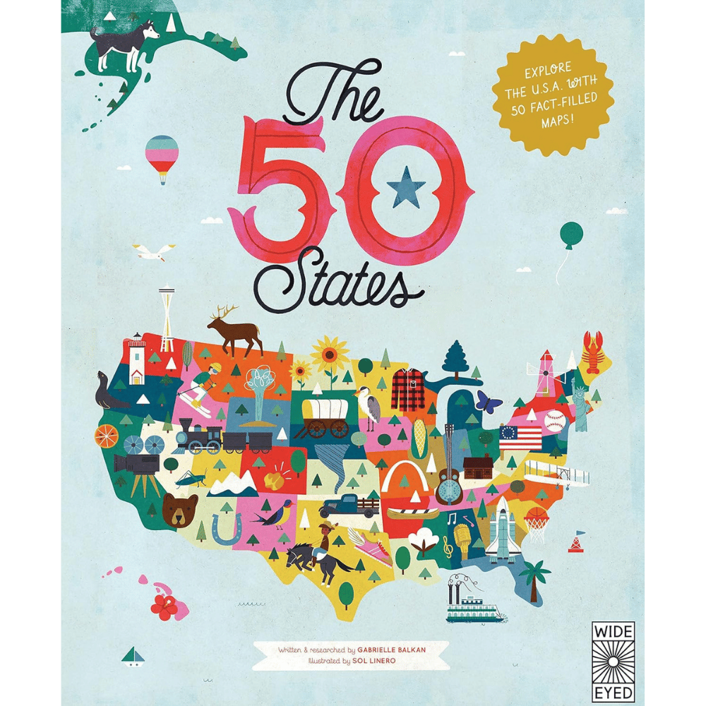 Discover the USA like never before with The 50 States This beautifully illustrated book features 51 infographic maps and photos that detail every American state. With fascinating facts about the people, cities, food, and other things that have shaped America, this coffee table book is perfect for both young learners and history buffs. Its vibrant yellow, blue, green, and brown cover adds a stylish touch to any coffee table.