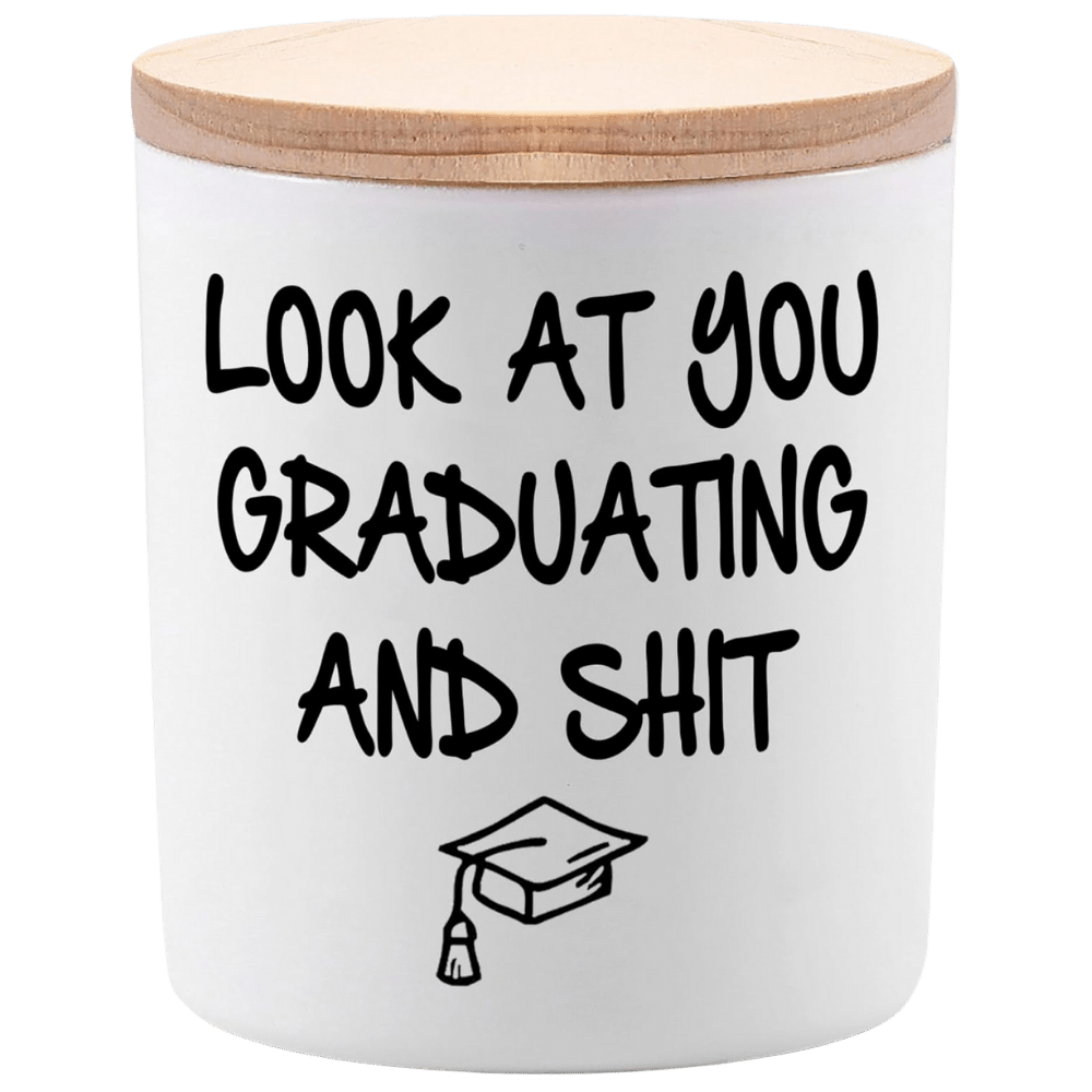 Celebrate your achievement with the BFJLIFE "Look At You Graduating And Sh*t" candle. This humorous, soy candle features a bold and playful design, perfect for commemorating your graduation milestone. Its sturdy, high-quality build ensures longevity, making it an excellent keepsake or gift for graduates.