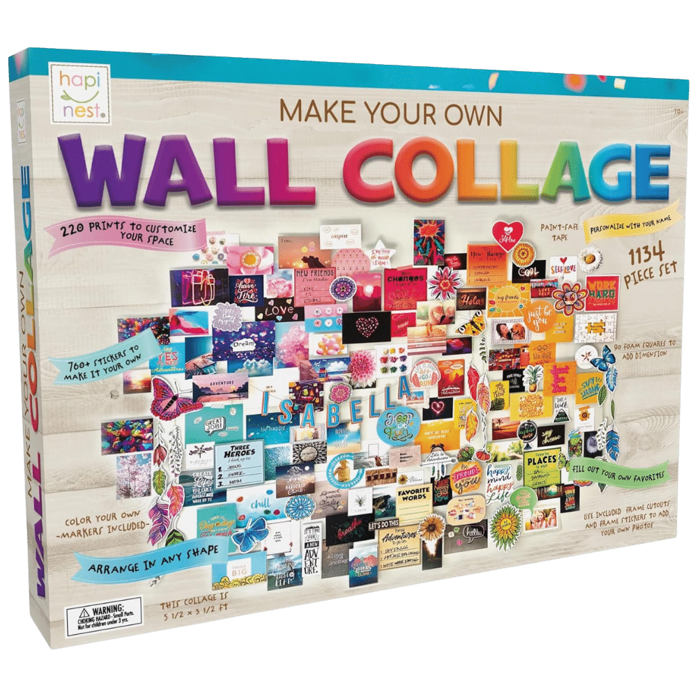 Ideal for adding a unique touch to dorm rooms, bedrooms, or any living area, the Hapinest DIY Wall Collage is both fun and easy to assemble. Discover your artistic side and make your walls speak volumes. Find it on Amazon.