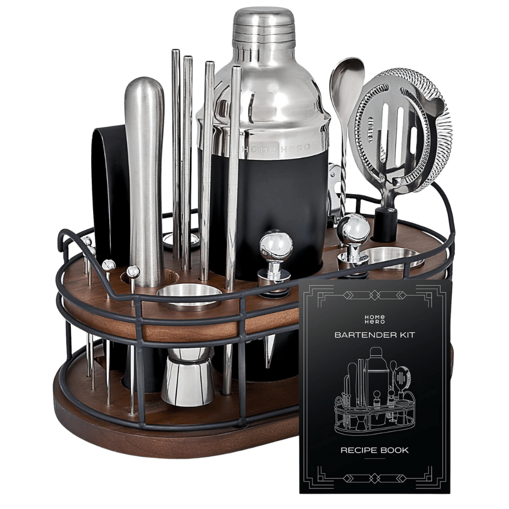 Elevate your home bartending skills with the Home Hero 22 Piece Cocktail Set. This all-in-one set includes everything you need to craft the perfect cocktail, from a shaker and strainer to a muddler and mixing spoon.