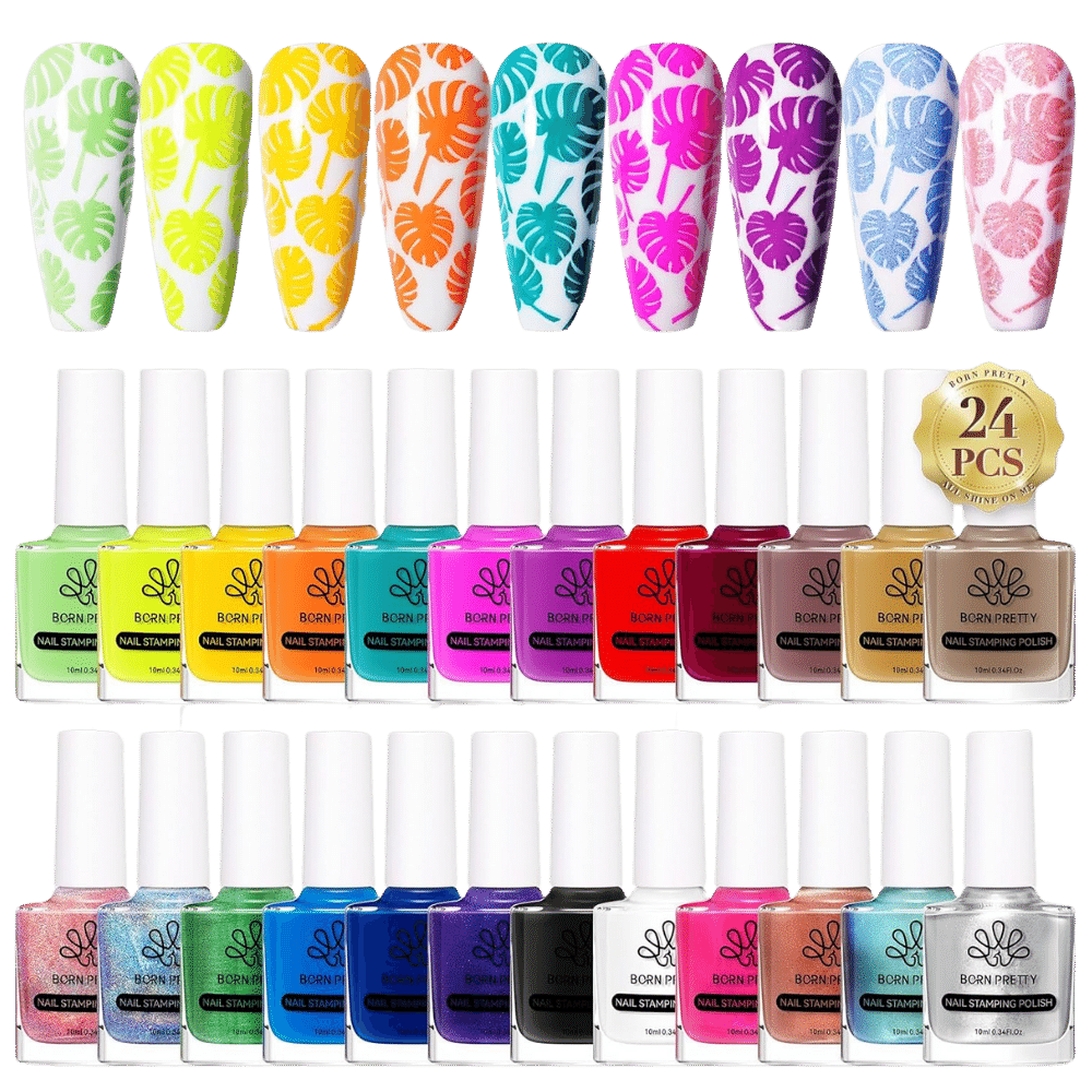 Unleash your creativity and passion for detailed, stunning nail art with the Born Pretty Nail Stamping Polish - 24 Piece Set.