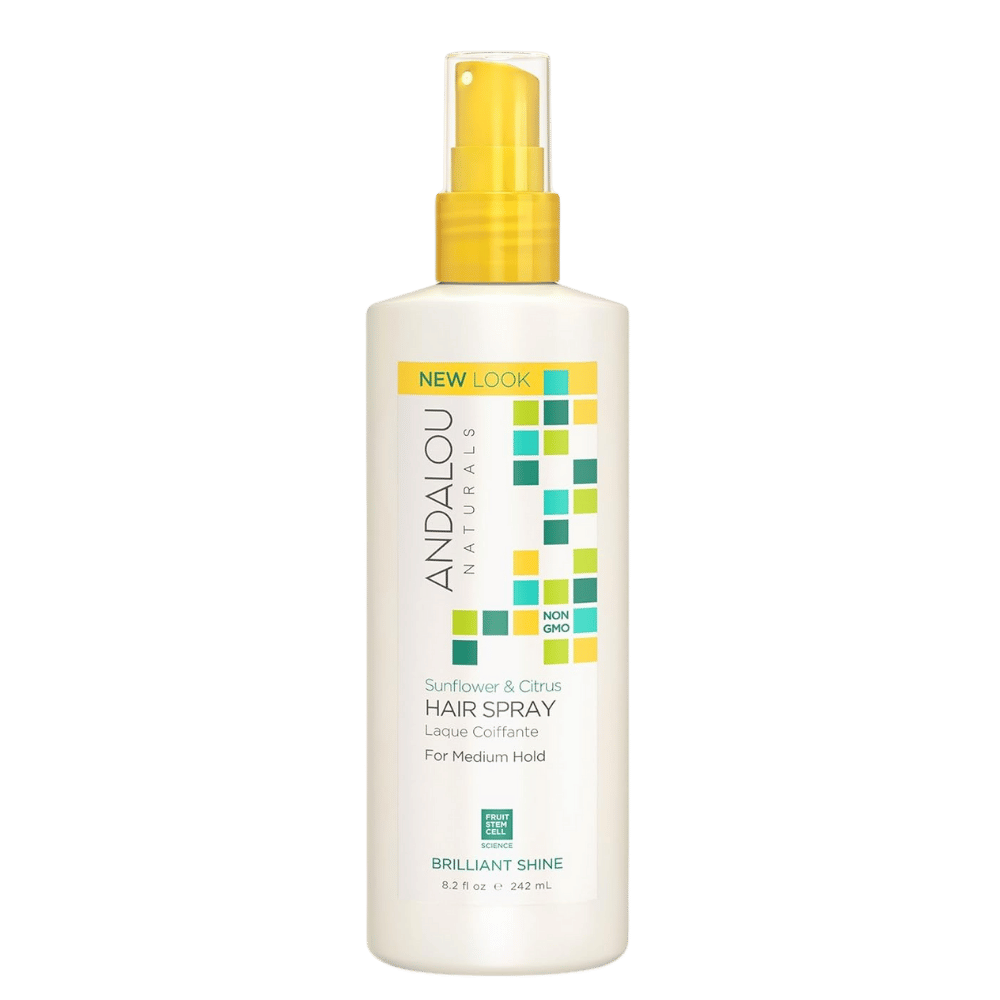 Introducing the Andalou Naturals Brilliant Shine Sunflower & Citrus Hair Spray—your new go-to for impeccable hair days. This shine spray offers a medium hold, perfect for flexible styling and added volume. Infused with Fruit Stem Cell Science, it not only helps you achieve your desired look but also nourishes and strengthens your hair, making it a good hairspray to go for. The result? Shiny, healthy locks that exude vitality and brilliance. This goes for curls, too.