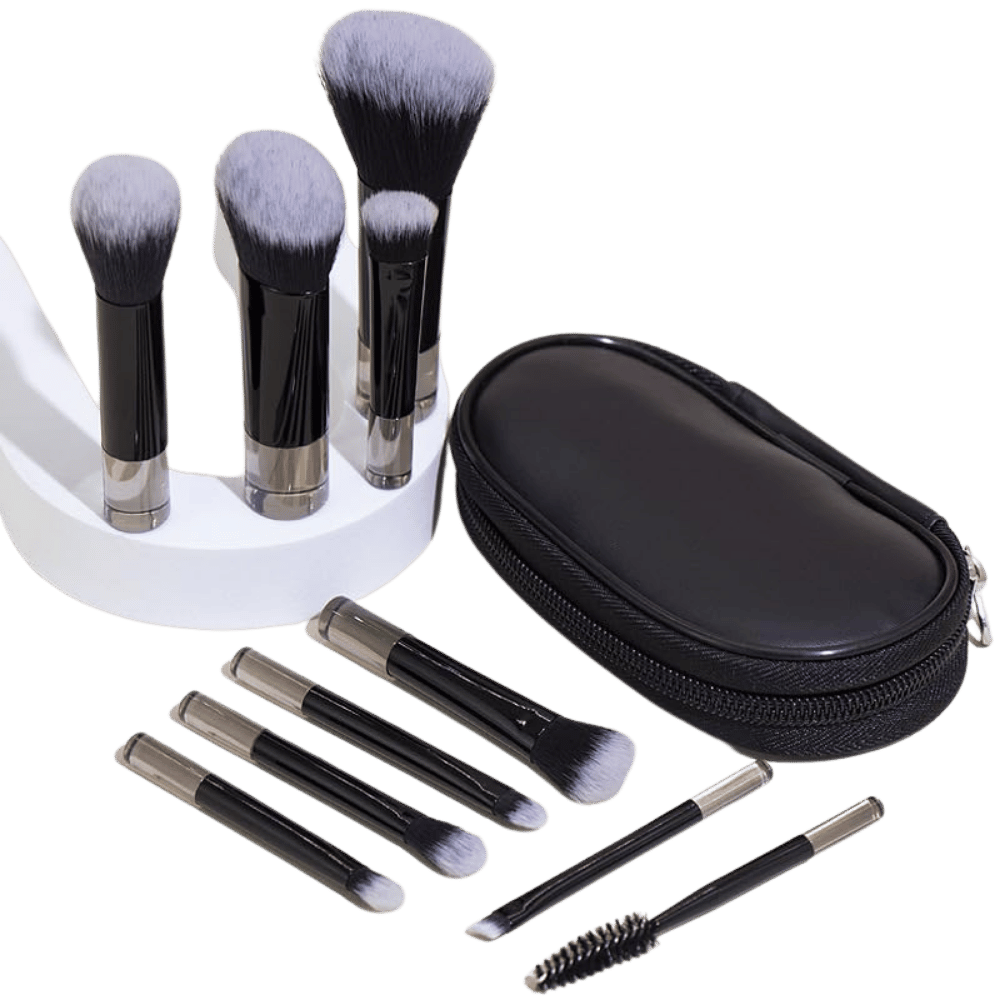 Crafted with high-quality materials, these tools promise durability and performance that rival full-sized counterparts, yet in a compact form. Plus, with a stylish makeup pouch included, you can easily organize your makeup brushes and take them anywhere. Whether you're jet-setting or just need a quick touch-up during the day, this set has got you covered.