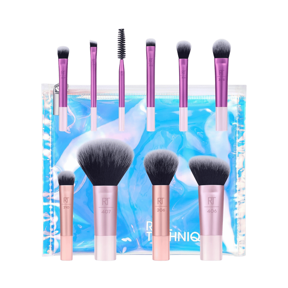 Imagine achieving flawless makeup on-the-go with a set that's as versatile and travel-ready as you are. The Real Techniques 11 Piece Travel Fantasy Mini Brush Set is your perfect companion for beauty on the fly. Each brush is specifically designed to meet your every need—allowing you to get that perfect full face makeup while traveling. The set even includes a spoolie to create those stunning brows.