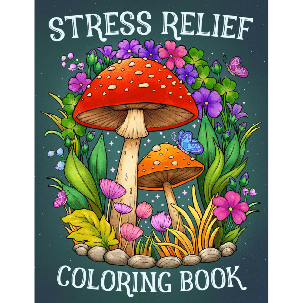 It’s designed for relaxation with 52 big, bold, and easy coloring pages. Featuring a mix of animals, landscapes, flowers, patterns, mushrooms, and more, each page offers a delightful escape.