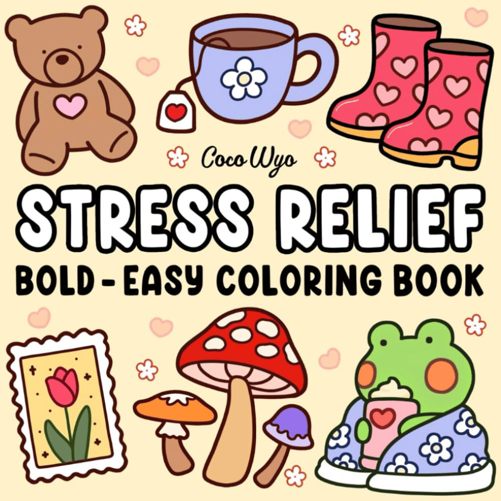 Imagine unwinding after a long day with Coco Wyo’s Stress Relief Bold and Easy Coloring Book.