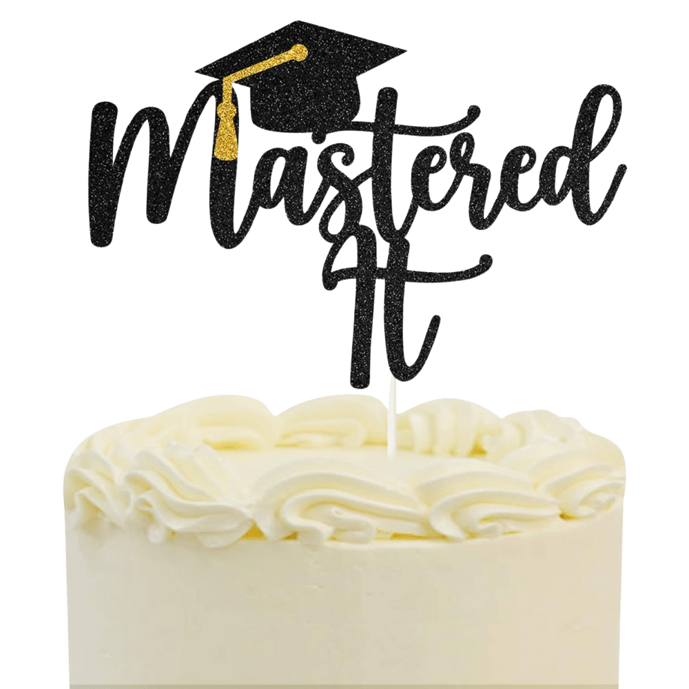 The topper's minimalist yet chic aesthetic ensures it complements any cake design while making a strong statement. Perfect for marking this momentous occasion, the PANHUI Black Glitter ‘Mastered It’ Cake Topper is a must-have for your graduation festivities. Check it out here.