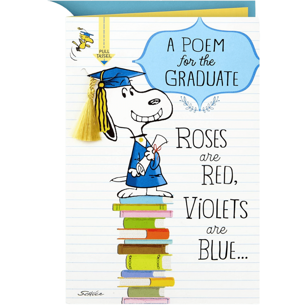 Celebrate the accomplishments of the graduates in 2024 with the Hallmark Peanuts Graduation Card with Sound. This charming card features beloved Peanuts characters, adding a nostalgic and cheerful touch to the graduation festivities. When opened, the card plays a delightful tune, providing an extra layer of joy and surprise.