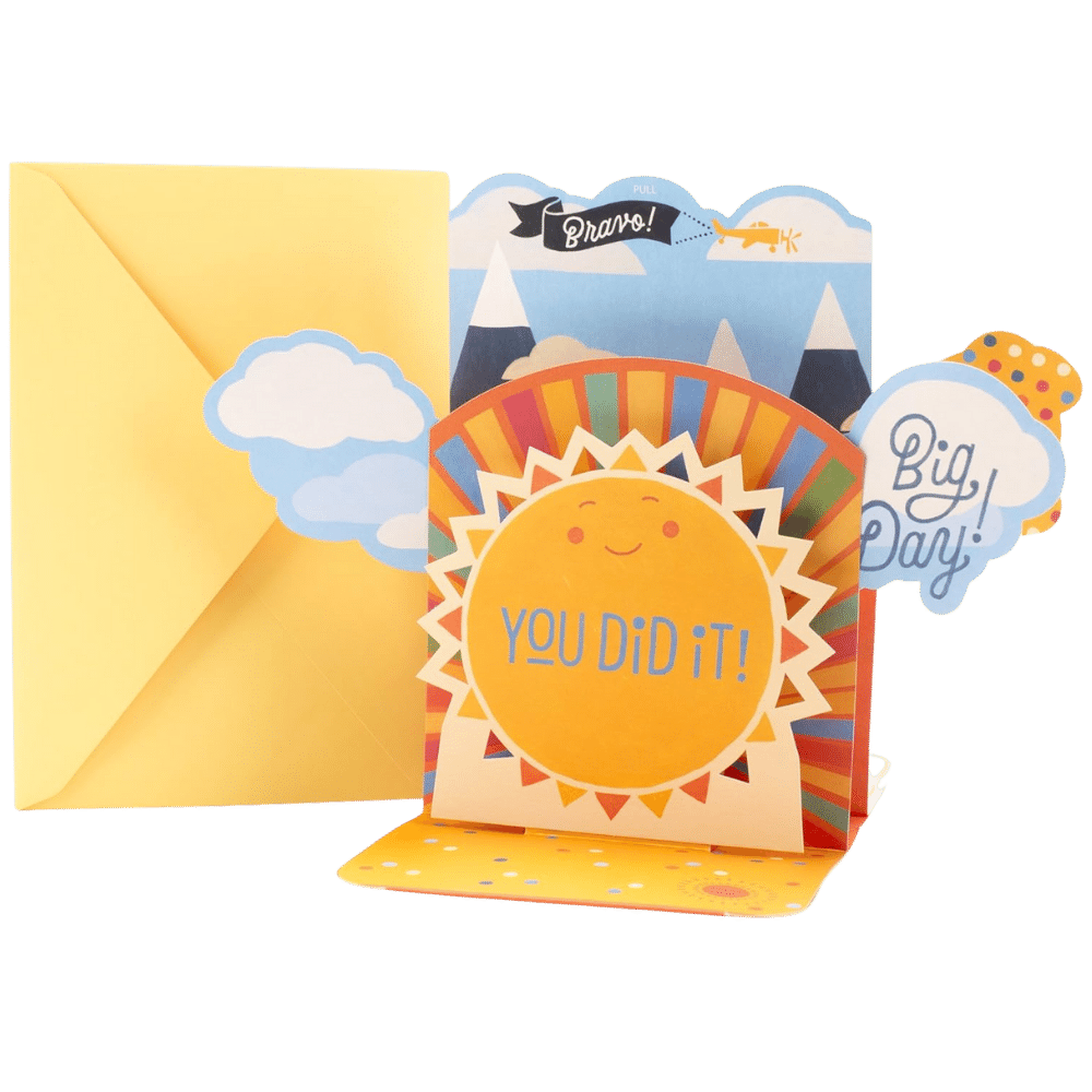 Make the graduation celebration unforgettable with the Hallmark Pop Up Graduation Card with Song. This delightful card features an intricate pop-up design that adds an element of surprise and joy.